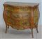 Comò a tre cassetti di forma mossa e bombata in legno laccato e dorato dipinto