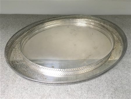 Lotto di due vassoi ovali in metallo argentato con bordi traforati, misure dive