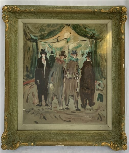 "Pagliacci" olio su cartone telato (cm 60x50) Firmato in basso a sinistra. In cornice
