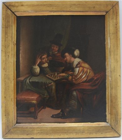 Ignoto della fine del secolo XVIII - inizio XIX "La partita a scacchi" olio su rame (cm 20x17). In cornice