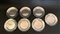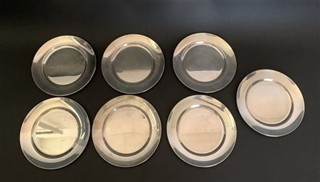 Lotto di sette piatti da pane in argento. Titolo 800. Argentiere Miracoli (g 1400 circa) (d. cm 17)
