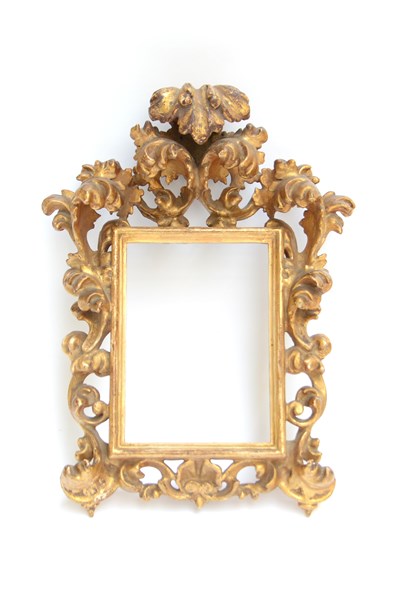 Piccola cornice in legno intagliato e dorato, secolo XIX (cm tot. 29x22, luce c