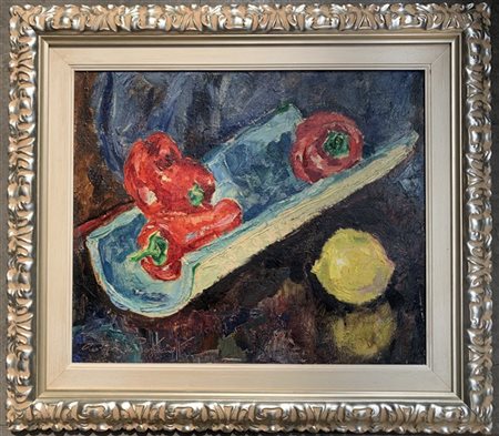 Georges De Pogedaieff Anatolevich "Tre peperoni" 1960 olio su tela (cm 46x55) Fi