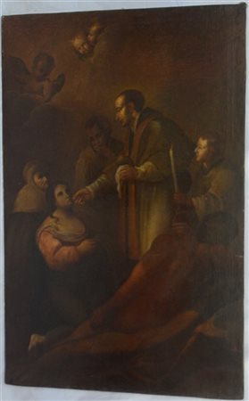 Scuola della fine del secolo XVIII "La comunione" olio su tela (cm 178.5x115)