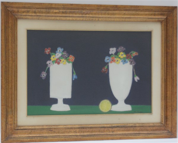 "Natura morta" olio su tela (cm 40x60) Firmato in basso a destra. Al retro: firmato e titolato. In cornice