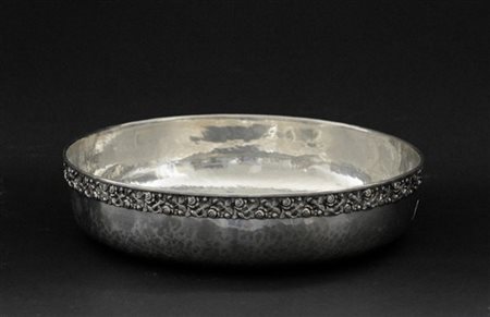Centrotavola in argento a corpo liscio, cesellato a fiori nella fascia sotto il bordo, argentiere Brandimarte (gr 680)