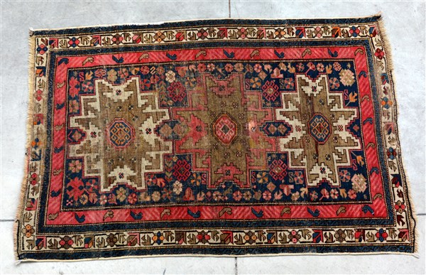 Tappeto Lesghi, Caucaso, secolo XX. Decoro con tre medaglioni a croce greca su