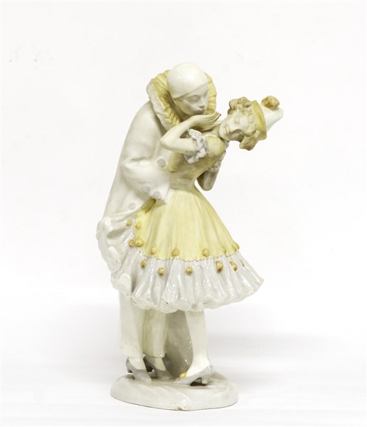 Manifattura di Vienna inizio secolo XX "Pierrot corteggiatore" gruppo in porcel