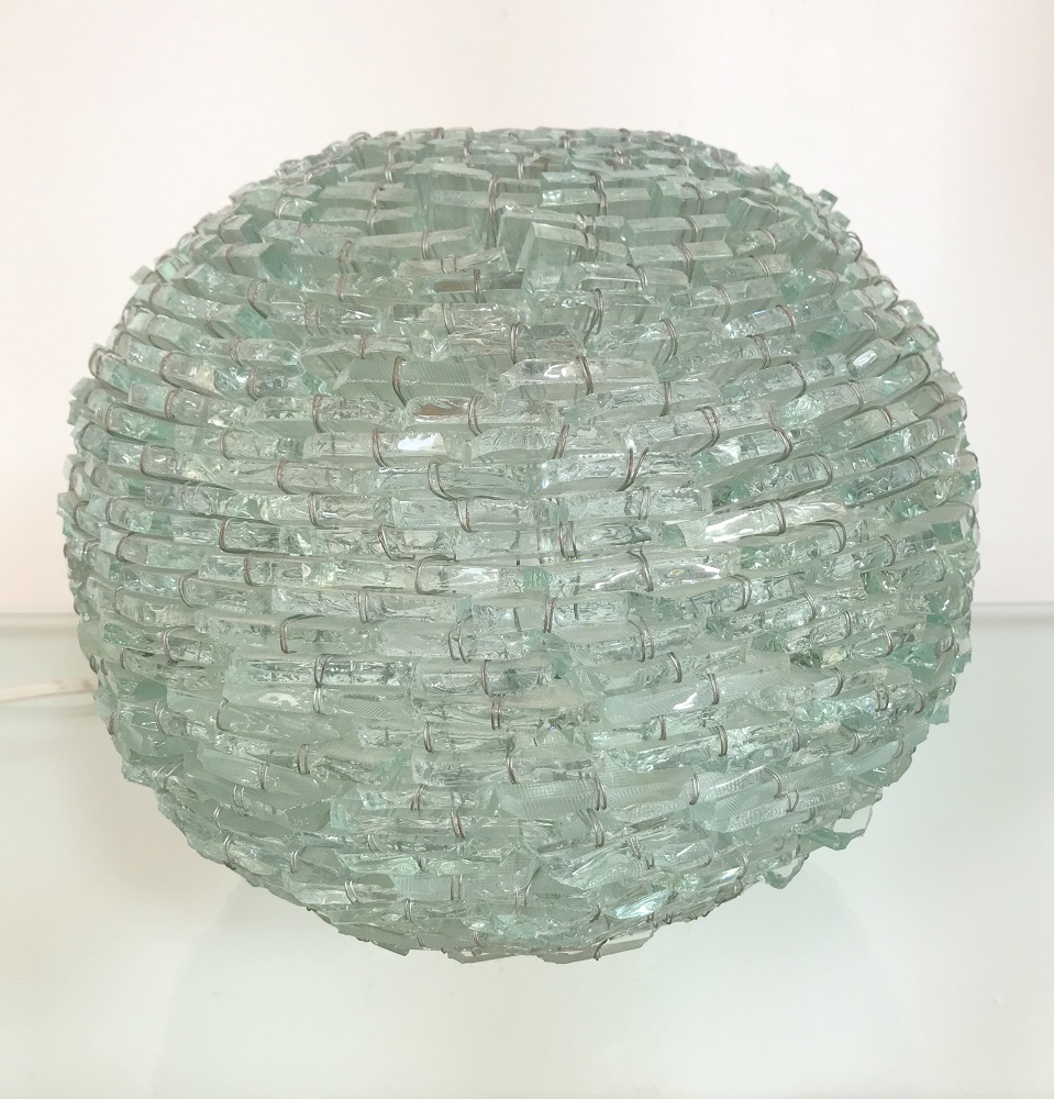 Abat jour di forma sferica composta da sezioni di vetro trasparente incolore ra