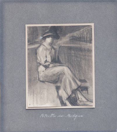 Vittorio Petrella da Bologna "Ritratto di Signora" disegno (cm 16x13) Firmato in