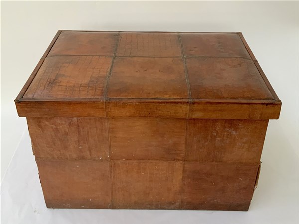 Bauletto in legno con maniglie laterali interamente rivstito in cuoio (cm 63x40