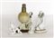 Lotto composto da una lampada da tavolo, un portaprofumo e due sculture raffigu