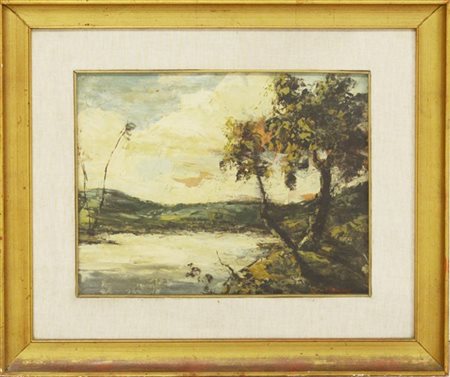V. Guiccardi "Paesaggio" olio su cartone (cm 35x45) firmato in basso a destra, in cornice