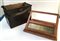 Lotto composto da un leggio e un gettacarte ricavato da una borsa in cuoio (difetti)