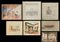 Lotto di sette disegni a matita, carboncino ed acquarello raffiguranti progetti