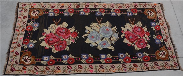 Tappeto Kilim karavan, caucaso, fine secolo XIX. Decoro con tre mazzi di rose n