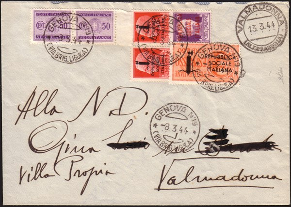 R.S.I. 1944 Busta da Genova per Valmadonna affrancata con un espresso con sopra