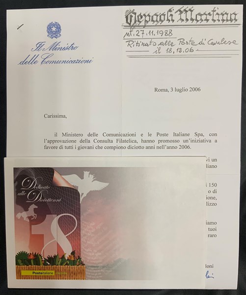 REPUBBLICA 2006 "Diciottenni". Foglietto rosa. Da esaminare MNH