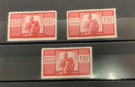 REPUBBLICA 1945/1948 "Democratica". 100 lire, lotto di 3 esemplari di buona/ott