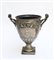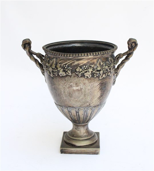 Vaso biansato in metallo argentato con decoro a baccellature e rami d'edera in