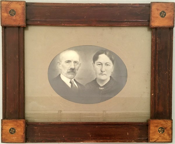 Lotto composto da due fotografie in bianco e nero raffiguranti figure, misure diverse. In cornici (difetti)