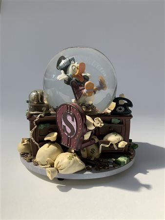 Carillon Disney con snow globe a tema "Paperon de' Paperoni". Vetro e resina policroma (h cm 18) (lievi difetti)