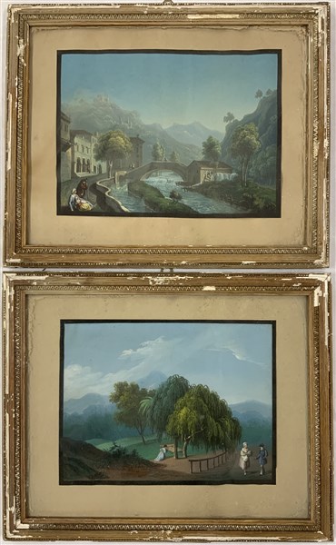 Artista del XIX Secolo. Coppia di guaches raffiguranti "Paesaggi" (cm 19x25 circa) In cornici
