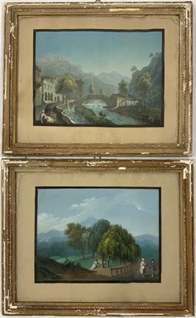 Artista del XIX Secolo. Coppia di guaches raffiguranti "Paesaggi" (cm 19x25 cir