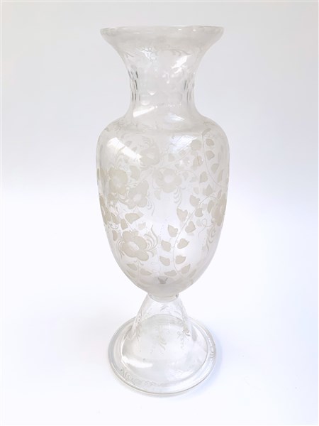 Vaso in cristallo a balaustro con decori floreali molati (h cm 43) (lievi difetti)