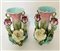 Coppia di vasi in ceramica policroma con anse a forma di violette e corpi decor