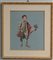 Ricamo piccolo e piccolissimo punto raffigurante gentiluomo su fondo azzurro. In cornice dorata (cm 45x41)