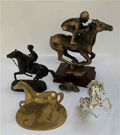 Lotto composto da quattro sculture diverse di soggetto equestre, misure diverse