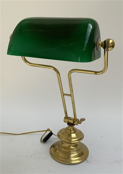 Lampada "minesteriale" in ottone con paralume verde (h cm 50) (lievi difetti)