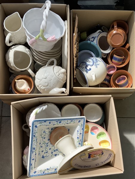 Manifatture diverse Tre cartoni contenenti numerosi oggetti in ceramica e altri