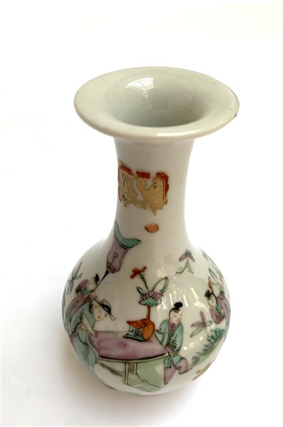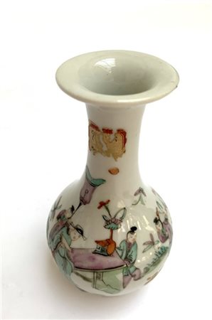 Vaso a bottiglia in porcellana decorata in policromia a figure Cina, sec. XX (