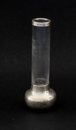 Vasetto porta fiori in vetro con base e ghiera in argento (h cm 19) (difetti)