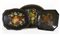Lotto di tre vassoi di diversa forma in metallo laccato a fondo nero decorato i