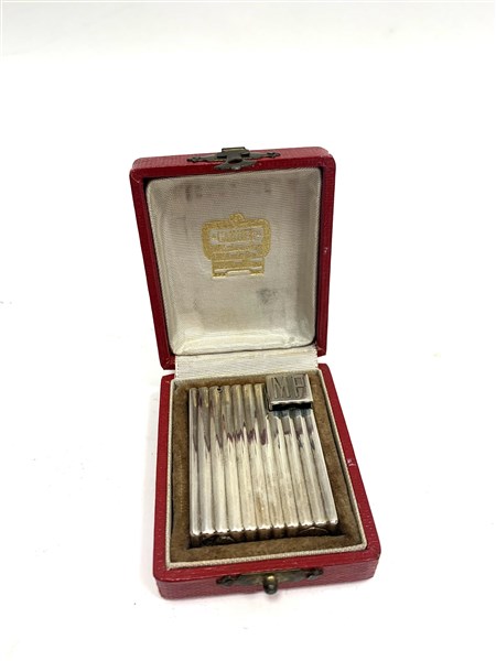 CARTIER Accendino scanalato in argento, cifrato MP in scatola originale (segni