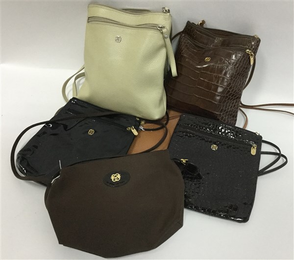 Lotto di sei buste con tracolla in vari colori e materiali, alcune stampa cocco (segni d'uso)