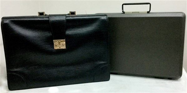 Lotto composto da due borse da lavoro una in pelle nera e l'altra in materiale tecnico "Forma Zero" (difetti e segni d'uso)