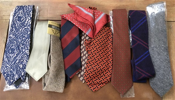 Cartone contenente numerose cravatte ed alcuni fazzoletti da taschino (difetti