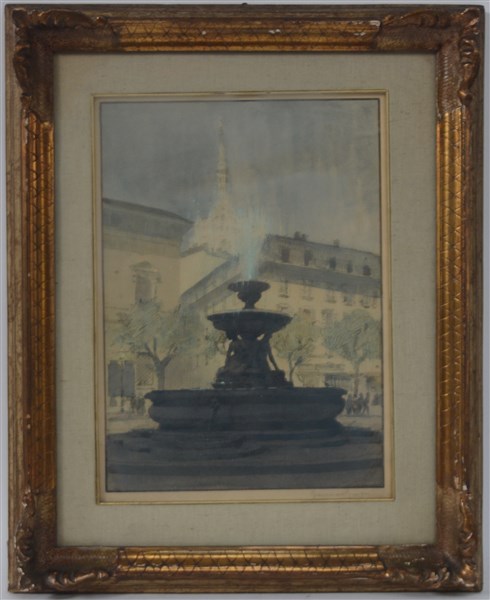 Giannino Grossi "Piazza Fontana a Milano" acquerello su carta (cm 35x25) Firmato