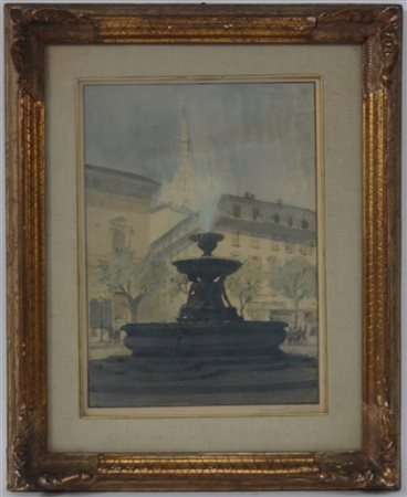"Piazza Fontana a Milano" acquerello su carta (cm 35x25) Firmato in basso a destra. In cornice