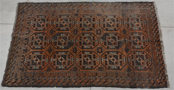 Tappeto Beluchistan, Persia, inizio secolo XX. Decoro con file di Gul su fondo