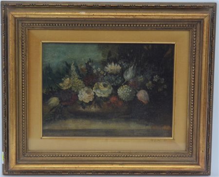 Ignoto del XIX Secolo "Vaso di fiori" olio su tavola (cm 22x30.5) In cornice (difetti)