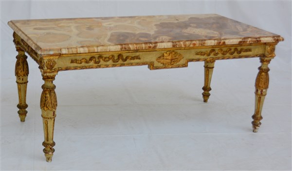 Tavolino da salotto in legno laccato e dorato con piano in marmo (difetti)