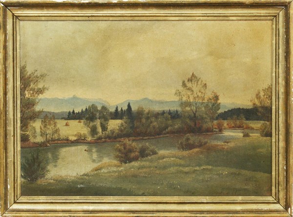 E. Thieme "Paesaggio fluviale" 1941, olio su tela (cm 50x70) Firmato e datato in