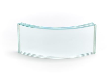 Portafoto in cristallo curvato di forte spessore. Milano, anni '70. (cm 24x9,5) (lievi difetti)