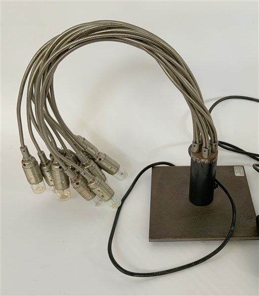 Lampada da tavolo modello "Bonsai". Produzione Catellani & Smith, Italia, anni 2000. Struttura in ferro grezzo cerato e dodici steli in flex modellabili. Recante etichetta della produzione. (lievi difetti)