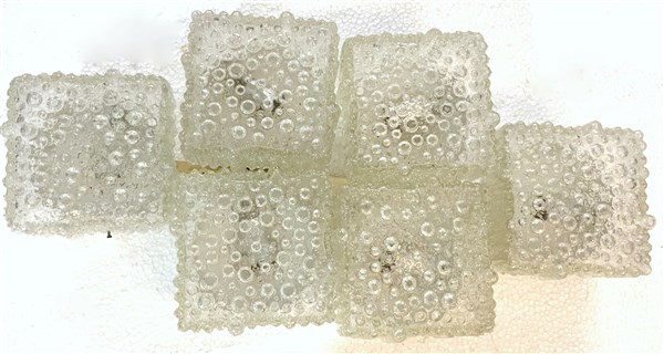 Applique a sei luci con diffusori quadrati in vetro stampato ad effetto bolle,